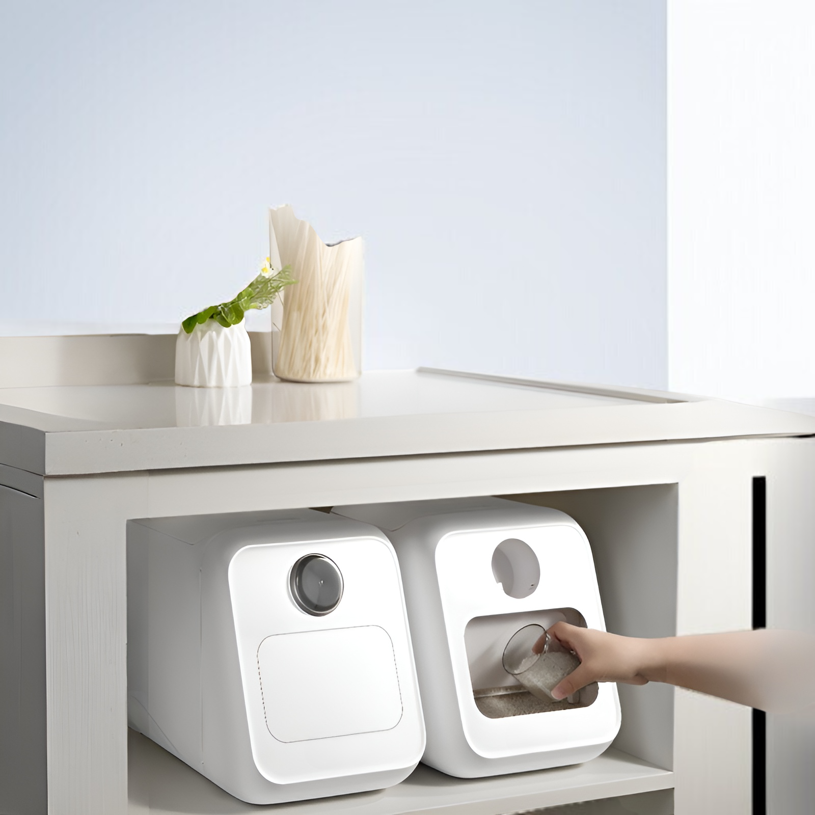 ● 重力逆流底開き設計で、米やペットフードを簡単に片手で取り出せる便利さを実現。毎日の使いやすさが抜群です。